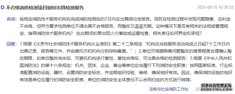 按规定消防技术服务机构在完成消防检测后的7日内应出具结论性报告。项目在检测过程中发现问题隐患,应判定不合格,但甲方要求检测单位不得出具不合格报告,而整改又遥遥无期。这种情况下是否有相关的法规或管理规定,指导消防技术服务机构?在此期间如果出现火灾事故或监督检查,相关责任如何界定和承担?